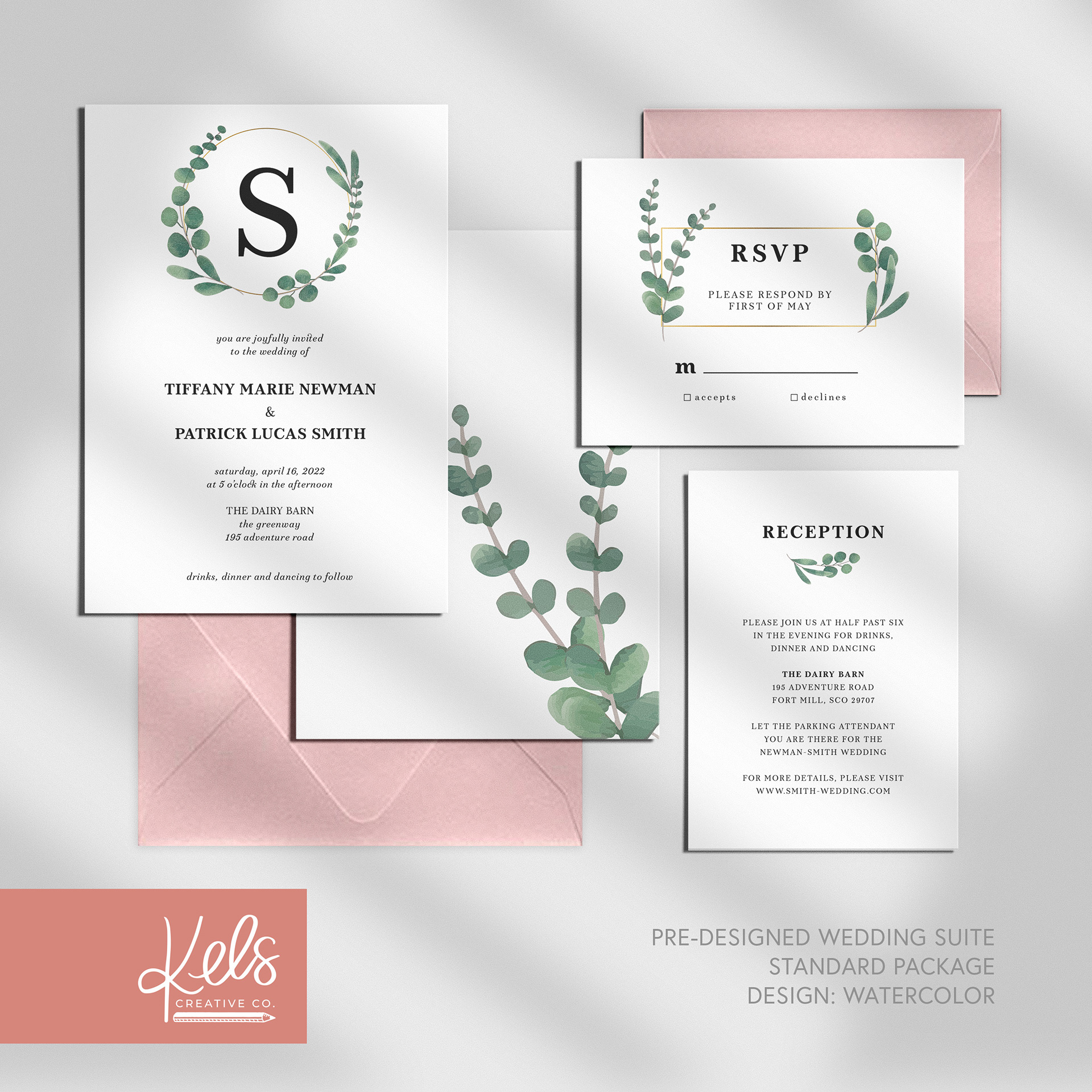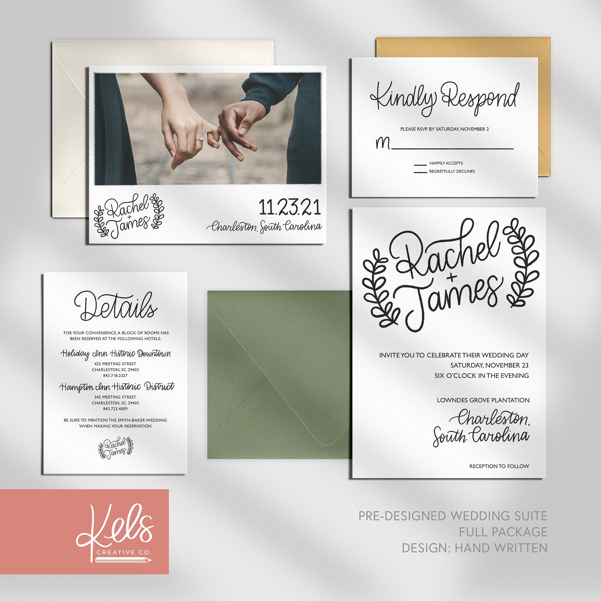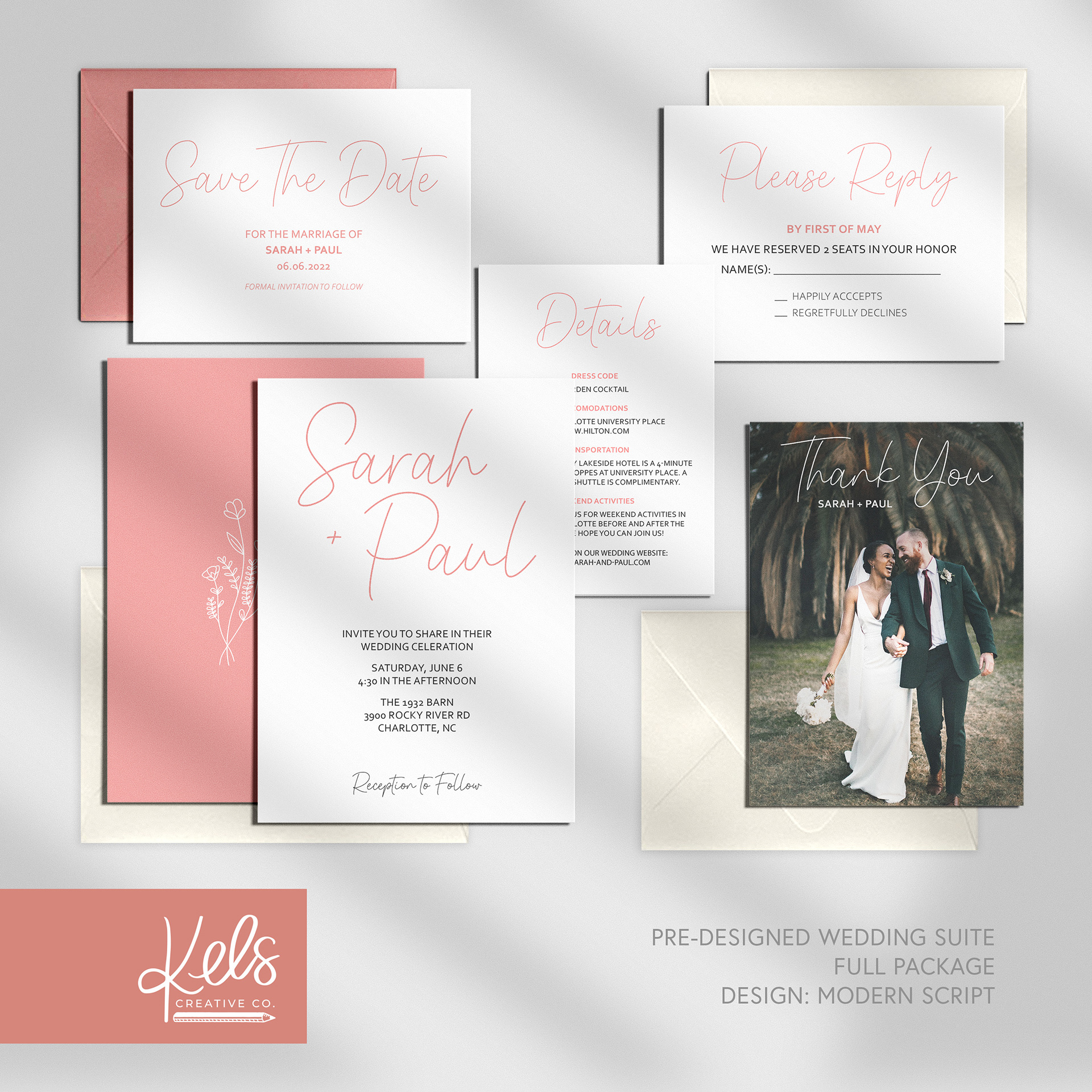 Various wedding suite designs created by Kels Creative Co. These pre-designed suites offer several different design styles for a budget-friendly option.